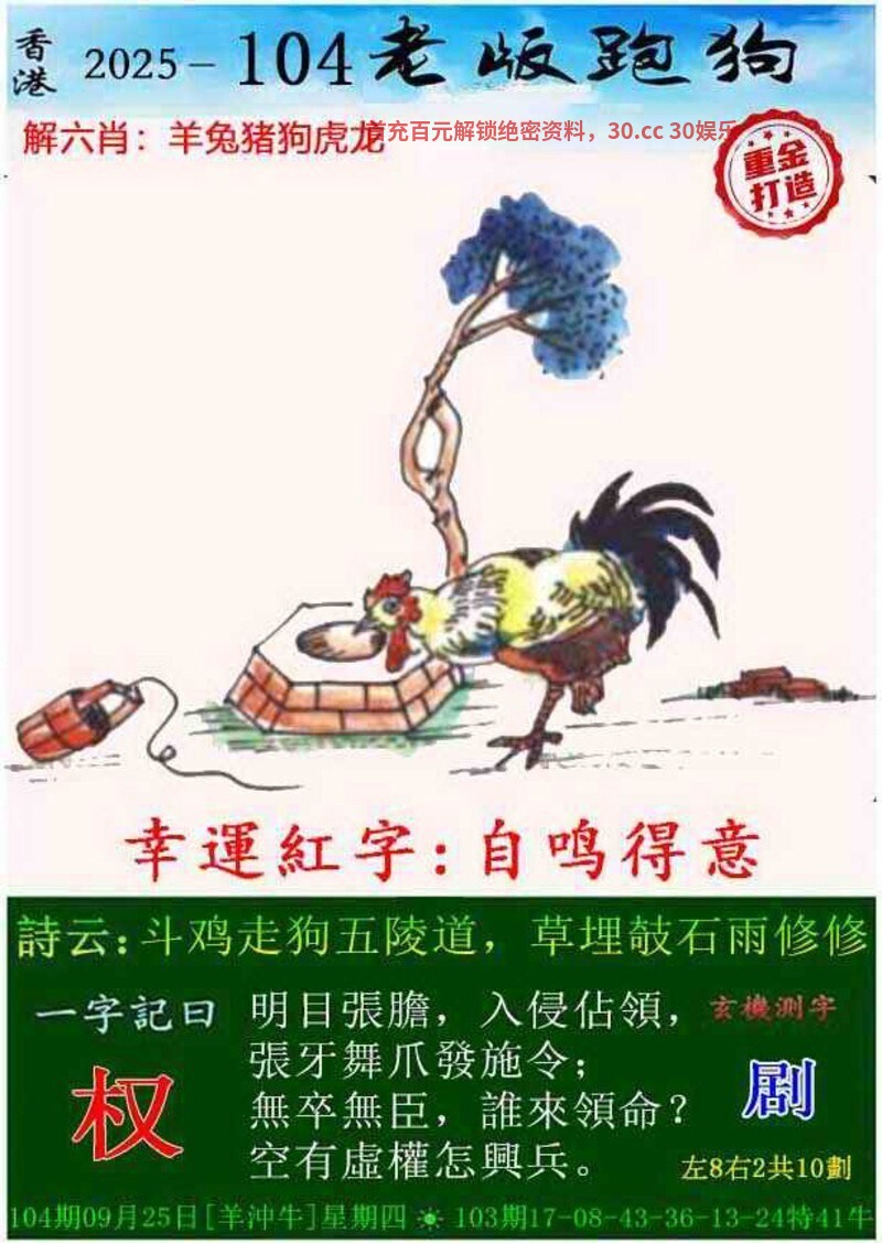 103期:吉凶两肖@凶丑+龙鸡@开:牛41准